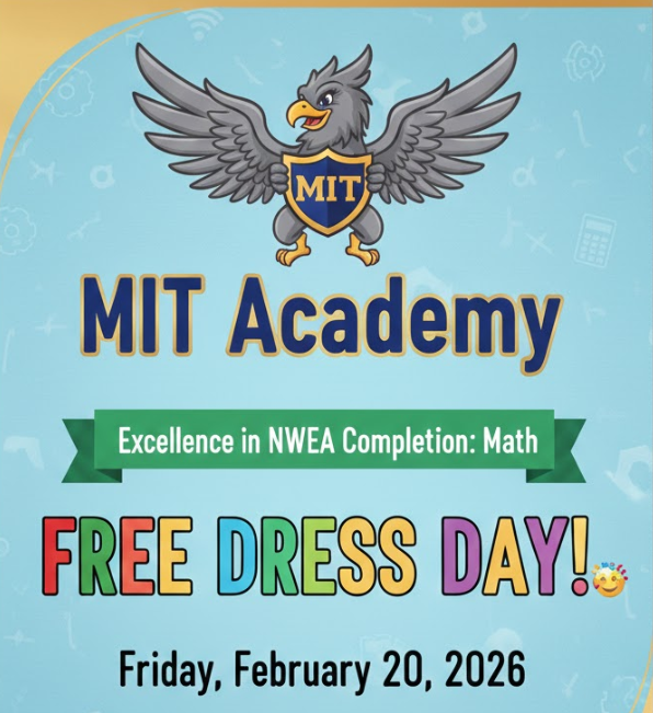 Hello MIT HS Students and Families,Thank you for completing your NWEA math tests. We appreciate your effort!Remember that Free Dress Day requires more effort and care than donning dress code attire...